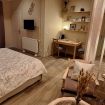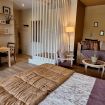 Des matières et couleurs naturelles pour un esprit bohème, la dernière née de nos chambres vous plaira à coup sûr ! Les couleurs de la fin d'un bel été illuminent la plus grande de nos chambres doubles. Les bois bruts des meubles de famille ou chinés et les différents rappels du monde végétal vous apportent cette touche chaleureuse qui feront de cette chambre votre refuge douillet alors que les jours raccourcissent. Respirez un grand coup sur votre terrasse privative face à la forêt et au château de Serrières.